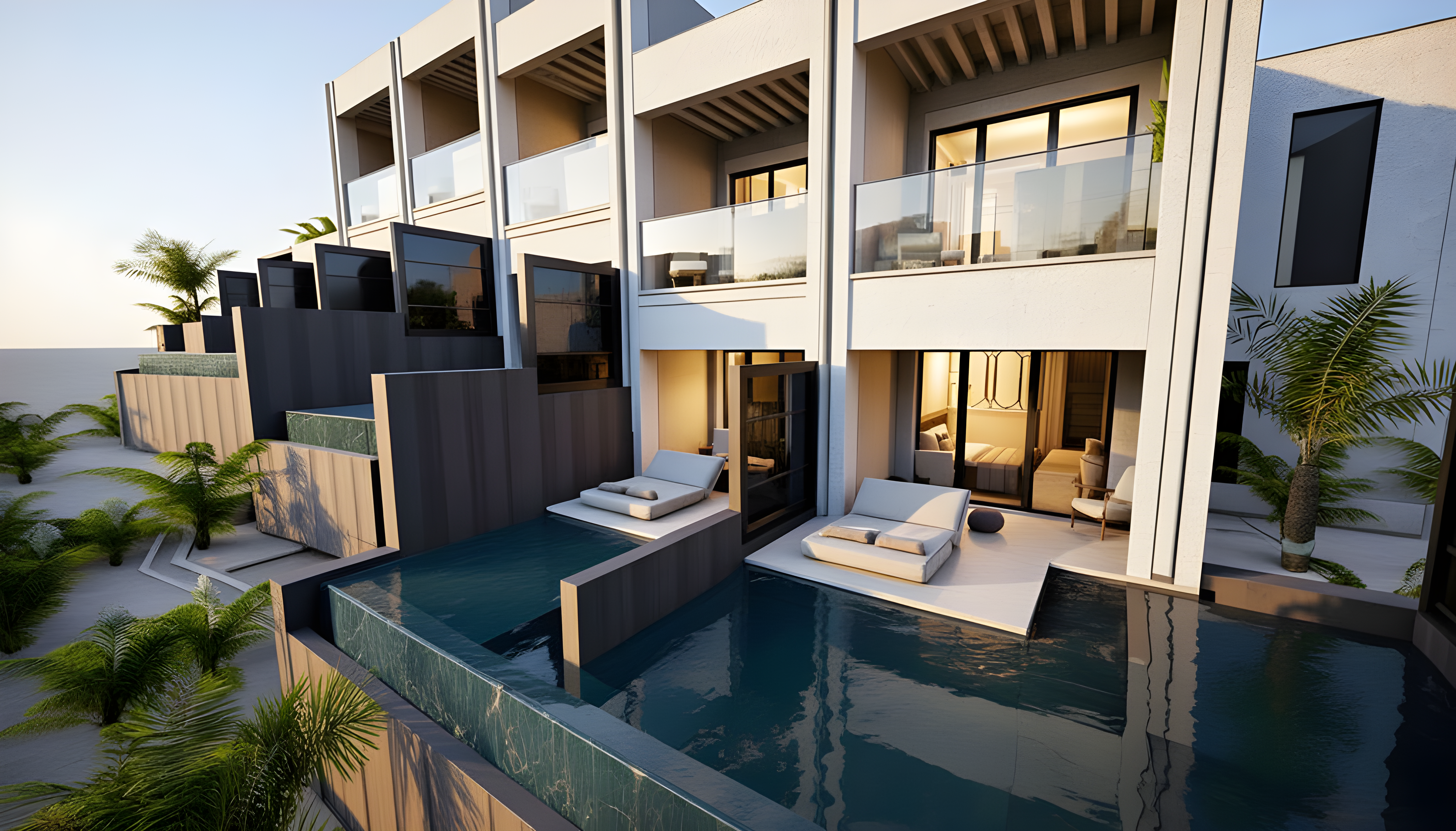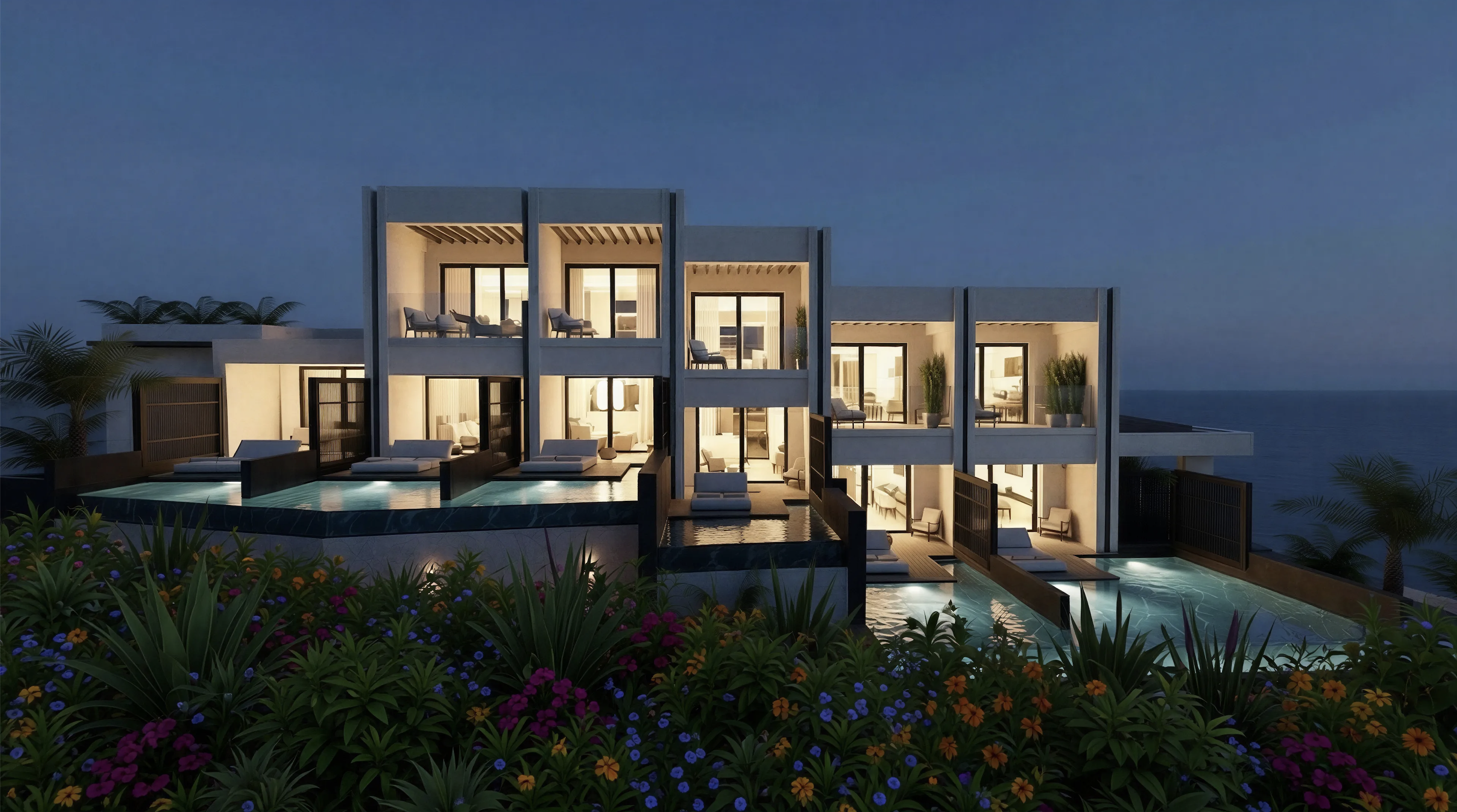 Posizionato per massimizzare l’orientamento e le viste panoramiche verso il mare, il complesso si sviluppa seguendo la morfologia del terreno attraverso volumi architettonici attentamente organizzati e spazi esterni privati, garantendo che ogni suite funzioni come un rifugio di lusso autonomo.